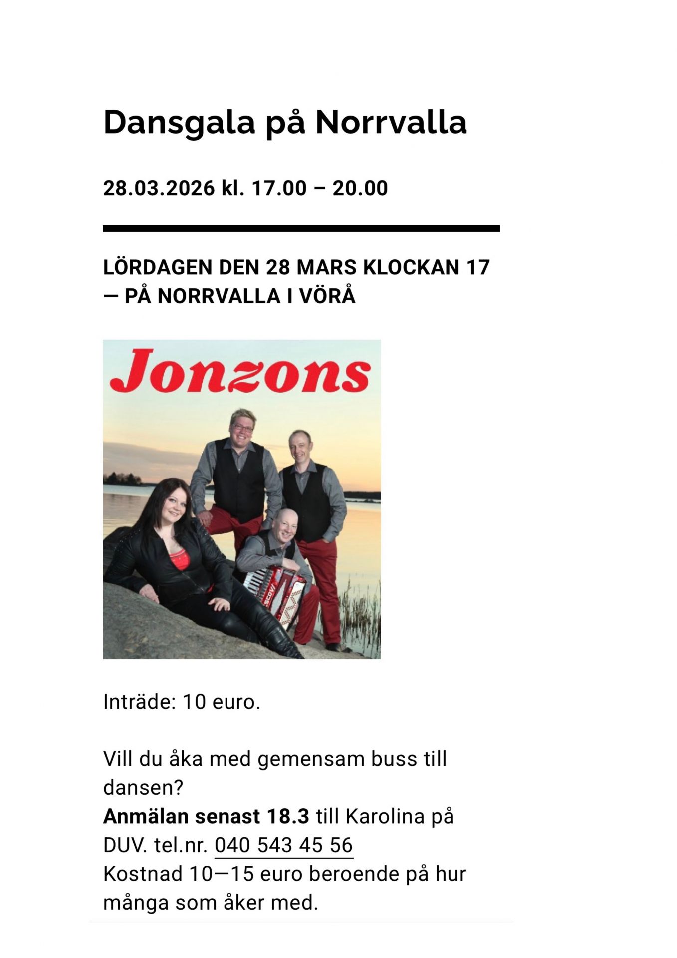 Dansgala på Norrvalla kl 17-20. Bifogat inbjudan.